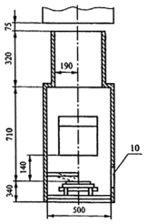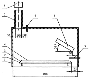 7.2 Испытательную камеру и дымоход (рисунок 1) изготавливают из листовой стали толщиной от 1,5 до 2 мм и облицовывают изнутри негорючим теплоизоляционным материалом толщиной не менее 10 мм.