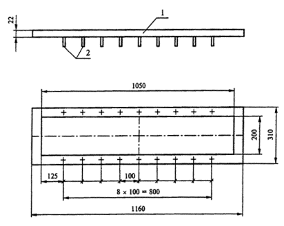8.1.2 Калибровку проводят на образце, изготовленном из асбестоцементных листов по ГОСТ 18124, толщиной от 10 до 12 мм (рисунок 4).