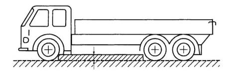 8.3.4 межосевой дорожный просвет: Кратчайшее расстояние между опорной плоскостью и самой нижней точкой транспортного средства, находящейся на его жестком элементе. Многоосные тележки рассматривают как одну ось. См. рисунок 4.