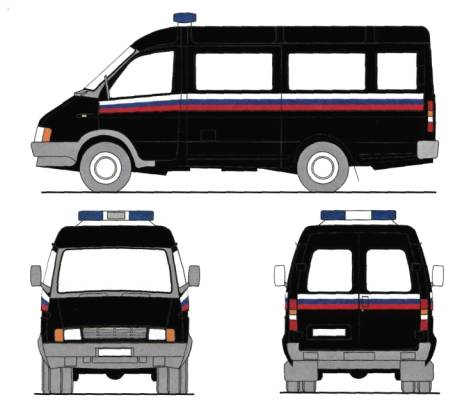 Рисунок А.47 - Цветографические схемы автомобилей органов федеральной службы безопасности, используемых для проведения неотложных действий по пресечению нарушений режима Государственной границы Российской Федерации