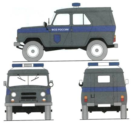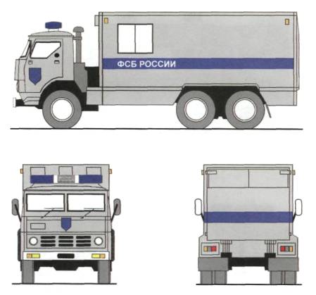 Рисунок А.34 - Цветографические схемы автомобилей органов федеральной службы безопасности, используемых для проведения неотложных действий по пресечению террористических актов