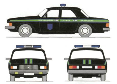Рисунок А.43 - Цветографические схемы автомобилей органов федеральной службы безопасности, используемых для проведения неотложных действий по пресечению нарушений режима Государственной границы Российской Федерации