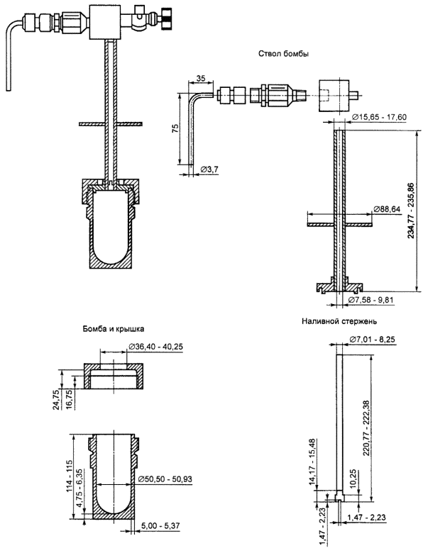 Ствол и наливной стержень должны быть изготовлены из того же материала, что и крышка бомбы. Размеры приведены на рисунке А.1.1.