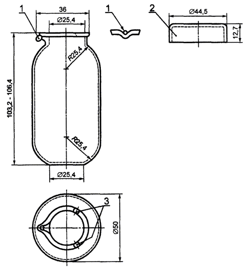 А.1.1.3 Размеры стеклянного сосуда для образца и крышки приведены на рисунке А.1.2.