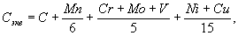 где С, Si, Mn, Cr, Mo, V, Ni, Сu, В - массовые доли в стали соответственно углерода, кремния, марганца, хрома, молибдена, ванадия, никеля, меди, бора, %.