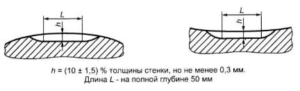 - глубина (высота) h устанавливается равной (10 ± 1,5) % толщины стенки трубы;