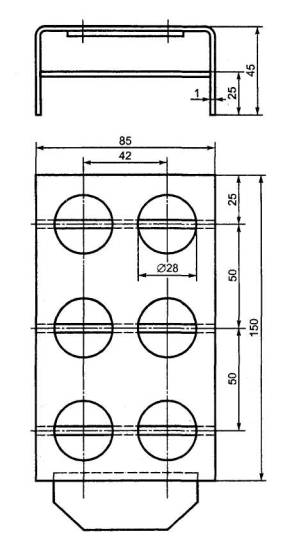 В муфельной печи обычной конструкции (рисунок 1) при проведении одновременно нескольких определений на одной подставке зона постоянной температуры должна быть не менее 160×100 мм. Для одного определения на индивидуальной подставке диаметр зоны с постоянной температурой составляет 40 мм.