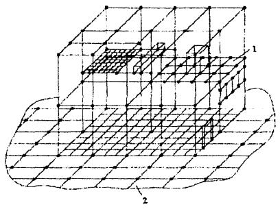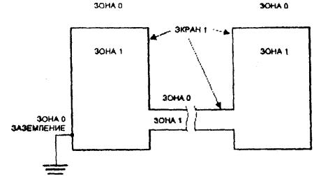 4) установкой соединительных полос (гибких плоских проводников) в местах стыков между соседними, но структурно разделенными блоками; расстояние между полосами должно быть вдвое меньше расстояния между спусками;