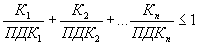 Ïðè îäíîâðåìåííîì ñîäåðæàíèè â âîçäóõå ðàáî÷åé çîíû íåñêîëüêèõ âðåäíûõ âåùåñòâ îäíîíàïðàâëåííîãî äåéñòâèÿ ñóììà îòíîøåíèé ôàêòè÷åñêèõ êîíöåíòðàöèé êàæäîãî èç íèõ (Ê, Ê1 ... Ên) â âîçäóõå ê èõ ÏÄÊ (ÏÄÊ, ÏÄÊ1 ... ÏÄÊn) íå äîëæíà ïðåâûøàòü åäèíèöû: