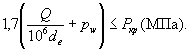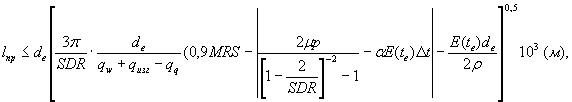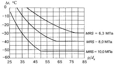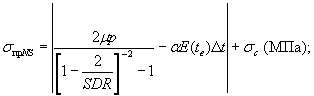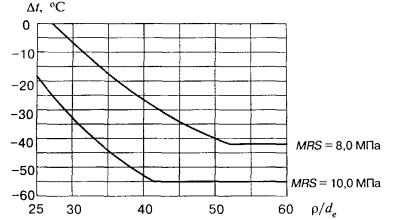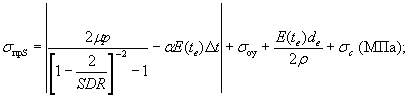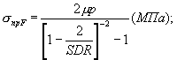 где MRS - показатель минимальной длительной прочности полиэтилена, использованного для изготовления труб и соединительных деталей, МПа (для ПЭ 80 и ПЭ 100 этот показатель равен 8,0 и 10,0 МПа соответственно);