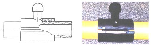 Образец фиксируют таким образом, чтобы удар падающим грузом был направлен параллельно оси трубы, ось бойка пересекалась с осью горловины седлового отвода и удар приходился посередине крышки. После нанесения первого удара образец разворачивают на 180°, чтобы следующий удар нанести с противоположной стороны.