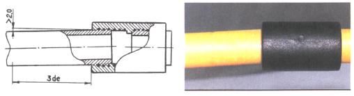 Испытываемый образец должен представлять собой седловой отвод, приваренный посередине полиэтиленового патрубка, длина свободных концов которого должна равняться номинальному наружному диаметру трубы с погрешностью в пределах ± 10 мм.