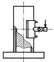 Нагрузка передается на образец через траверсу, устанавливаемую на середине образца напротив сварного шва. Местное утолщение грата образца со стороны опорной траверсы снимается.