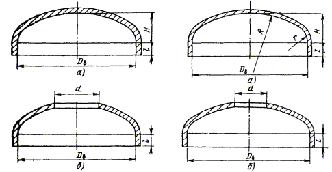 2.2.1.1. Для оборудования групп А и В следует применять крышки и днища сферической, эллиптической, торо-сферической (кроме арматуры), тарельчатой (в виде приваренного к фланцу сферического сегмента) формы.