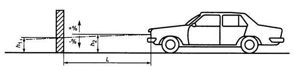 Е.3.2 Площадка, на которой проводят измерения, должна быть максимально ровной и горизонтальной, чтобы воспроизводимость результатов измерений наклона луча ближнего света обеспечивалась с точностью ± 0,5 мрад (± 0,05%).