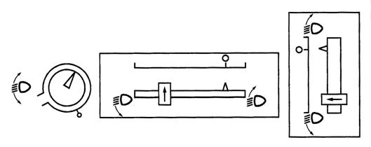 Вращающийся орган управления, у которого видна вся шкала регулирования или только ее край, должен действовать по принципу, предусмотренному для органов управления, приведенных выше в перечислениях а) или с)