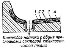 - покраска в случаях, предусмотренных п. 2.7, тиоколовой грунтовкой завулканизовавшейся поверхности покрытия для повышения сцепления с ним защитного слоя;
