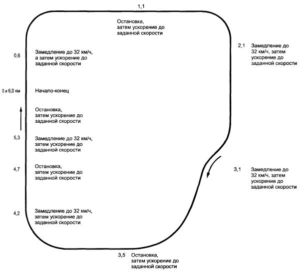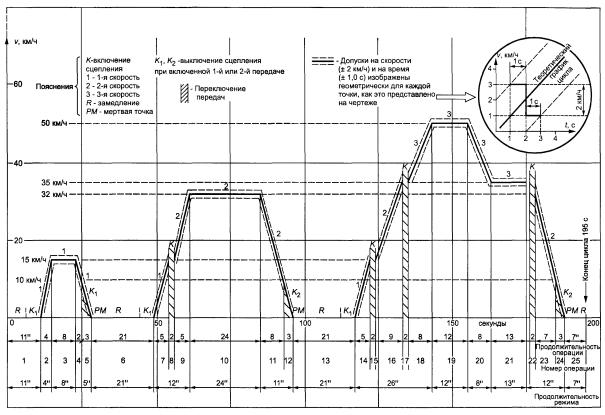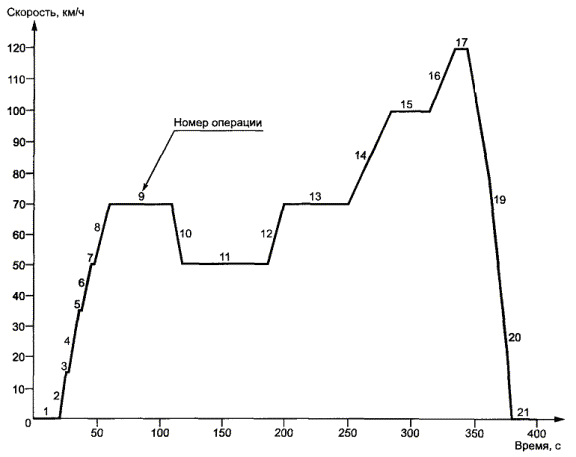 Р.3.2.3.1.1 Для транспортных средств, оснащенных двигателем с воспламенением от сжатия, используют вторую часть цикла, описанного в дополнении 1 к приложению Г. Три последовательных ездовых цикла должны быть проведены в соответствии с Р.3.2.3.4.3.