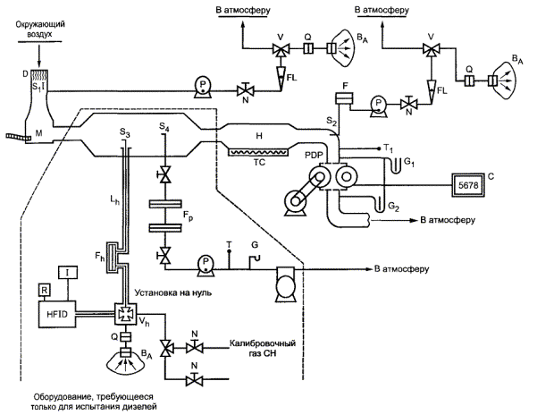 Р.3.2.3.4.4 Отработавшие газы должны быть подвергнуты анализу в соответствии с приложением Г.