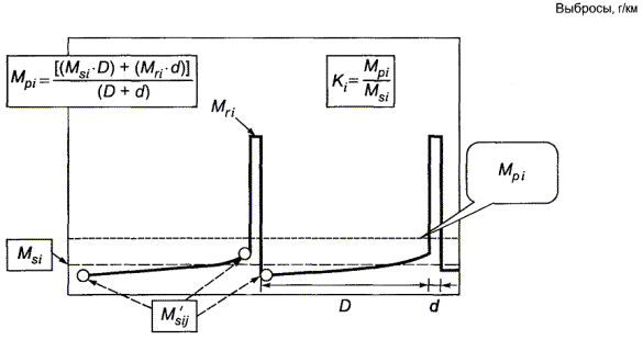 M 1i - усредненная масса выбросов i-го вредного вещества, г/км, при полностью заряженном накопительном устройстве механической/электрической энергии, вычисляемая согласно 3.1.2.7;