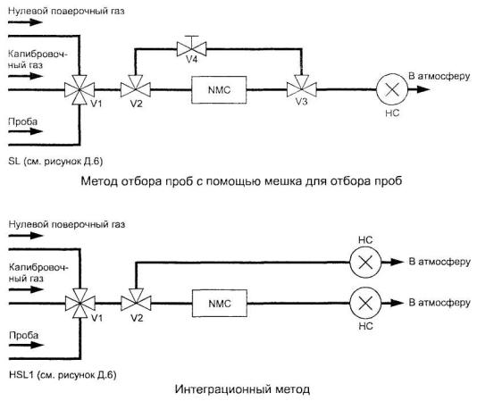 Для систем без теплообменника массу выбросов вредных веществ в граммах за цикл определяют расчетом мгновенных значений масс выбросов и интегрированием мгновенных значений за цикл. Кроме того, выполняют фоновую коррекцию непосредственно по мгновенным значениям концентрации. Вычисления проводят по следующим формулам: