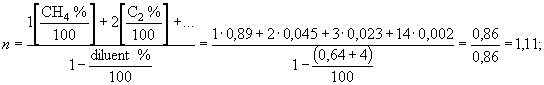 -углеводороды, не содержащие метан, с условной молекулой СН1,85 для дизельного топлива, СН2,525 - для СНГ и СН2,93 для ПГ;