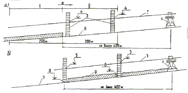 Планировку верха земляного полотна по лазерному копиру производят на прямолинейном участке с продольным уклоном до 30 и на участках с горизонтальными кривыми, а по жесткому копиру - на участках земляного полотна с вертикальными кривыми.