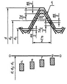 es - верхнее отклонение диаметров наружной резьбы, мкм;