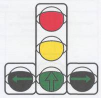 4.2.10 При наличии дополнительной секции на рассеивателе основного зеленого сигнала наносят контурные стрелки направлений движения. При этом светофор должен быть оборудован экраном белого