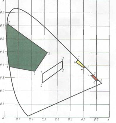Рисунок Г.1 - Границы цветовых областей выходной апертуры светофора