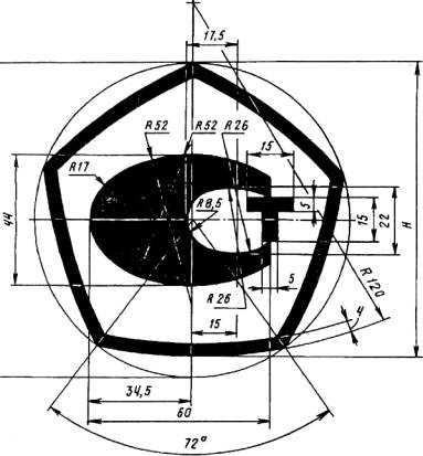 Начертание и способ построения знака высотой 100 мм должны соответствовать указанным на чертеже.