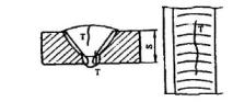 - Выполнить сварку корневого слоя шва электродами целлюлозного типа Е7010. Направление сварки -сверху-вниз