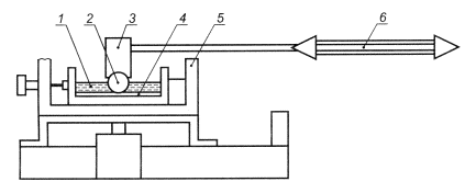 Аппарат для испытания, приведенный на рисунке 1, должен обеспечивать возможность приводить в возвратно-поступательное движение с заданной частотой, длиной хода и нагрузкой укрепленный металлический шарик в контакте со стационарной стальной пластиной; при этом вступающие в контакт поверхности должны быть полностью погружены в испытуемое топливо в соответствии с условиями испытания по таблице 1.