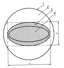 9.3. Измеряют диаметр пятна износа по оси абсцисс и оси ординат с точностью до 1 мкм. Полученные в результате измерений значения заносят в таблицу. Если расхождение в размерах пятна износа по оси абсцисс и оси ординат превышает диапазон от плюс 100 до минус 30 мкм, следует проверить правильность определения границ пятна износа.