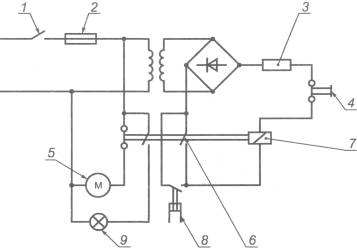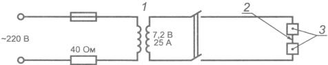 1 - испытуемая цепь; 2 - нагрузка; 3 - ртутный выключатель; 4 - вольтметр высокого сопротивления; 5 - щуп для измерения величины тока