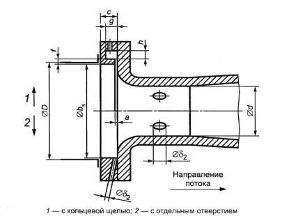 6.6.2 Уплотнительные прокладки и(или) уплотнительные кольца не должны выступать во внутреннюю полость ИТ и перегораживать отверстия для отбора давления или щели камер усреднения. Они должны быть как можно тоньше с учетом необходимости выполнения условий, приведенных в 5.1.5.2 или 5.2.5.1.