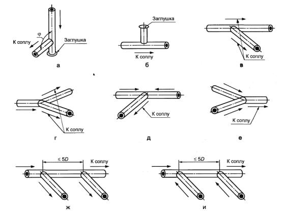«Смешивающий потоки тройник» - тройник, поток из которого выходит из одного звена (см. рисунки А.2 д, е), а входит в два звена.