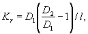Диффузор характеризуют конусностью Kr, которую рассчитывают как отношение разности диаметров двух прямолинейных участков трубопроводов, соединенных конусом, к длине l этого конуса по формуле