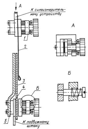 Приспособление для сохранения постоянного угла расслаивания (см. чертеж), прикрепляется к нижнему зажиму разрывной машины.