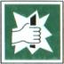 Используется дм обозначения места ручного пуска установок пожарной сигнализации, противо-дымной защиты и пожаротушения; места (пункта) подачи сигнала пожарной тревоги |