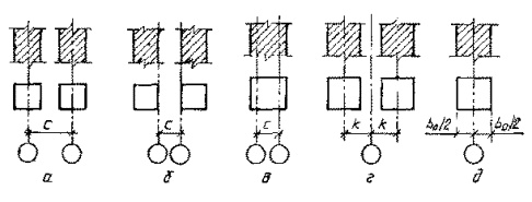 1) расстояние с между парными координационными осями (черт. 11а, б, в) должно быть кратным модулю 3М и, при необходимости, М или 1/2М; привязка каждой из колонн к координационным осям должна приниматься в соответствии с требованиями п. 4.7;