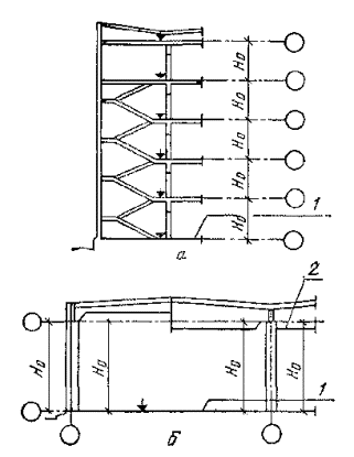 4.12. В одноэтажных зданиях с верхней горизонтальной основной координационной плоскостью совмещают наиболее низкую опорную плоскость конструкции покрытия (черт. 12б).