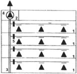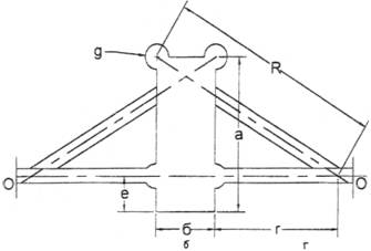 Для условий, отличных от приведенных в табл. 1 и 2, необходимые при проектировании планировочные параметры проезда могут быть определены графическим путем при помощи шаблона (рис. 1). Шаблон изготавливается из прозрачного материала в масштабе чертежа, накладывается на него и вращается относительно оси О. При этом рекомендуется выполнять следующие условия: