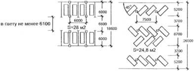 Примечание. При проектировании автостоянок для других марок автомашин следует руководствоваться их габаритами, указанными в паспортах.