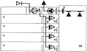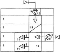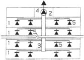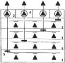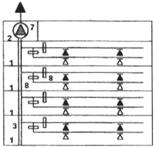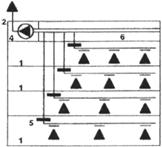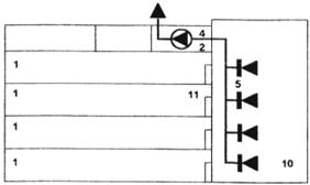 Схема вытяжной противодымной вентиляции 1 - этажи 2 - венткамера 3 - шахта 4 - вентиляторы 5 - нормально-закрытые клапаны (КДМ) |