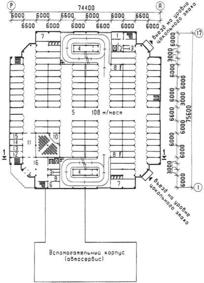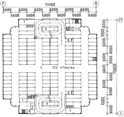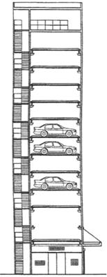 Аналогичная автостоянка построена в 1992 г. - ул. Скаковая, 17 (см. «Каталог проектов гаражей-автостоянок» Москва 1997 г.).