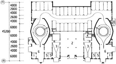 Конструкции - монолитные жлезобетонные. Перекрытия без внутренних опор сводчатые однопролетные.