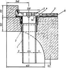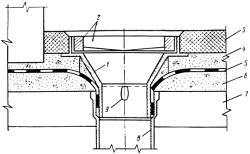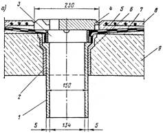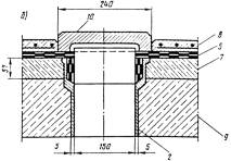 Звено в уровне опирания на поддон заливают горячим битумом слоем 10 см или герметизируют с помощью упругих прокладок, обжимаемых специальными приспособлениями.