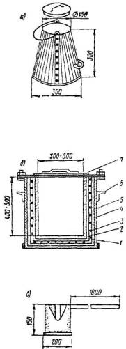 Многофакельная горелка (ГВПЛ) (см. рис. 13) состоит из штуцера для присоединения запальника, запальника, распределительного коллектора, форсунок, опорных колес, ствола.