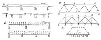 элементы сквозных ферм номерами (см. рис. 1.1, в);